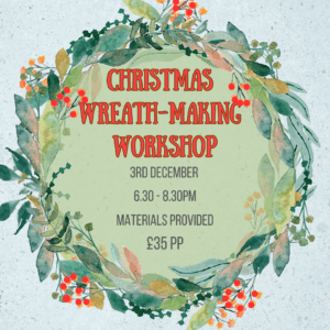Together we will craft a beautiful Christmas Wreath using a variety of foliage, with natural adornments on a willow wreath.